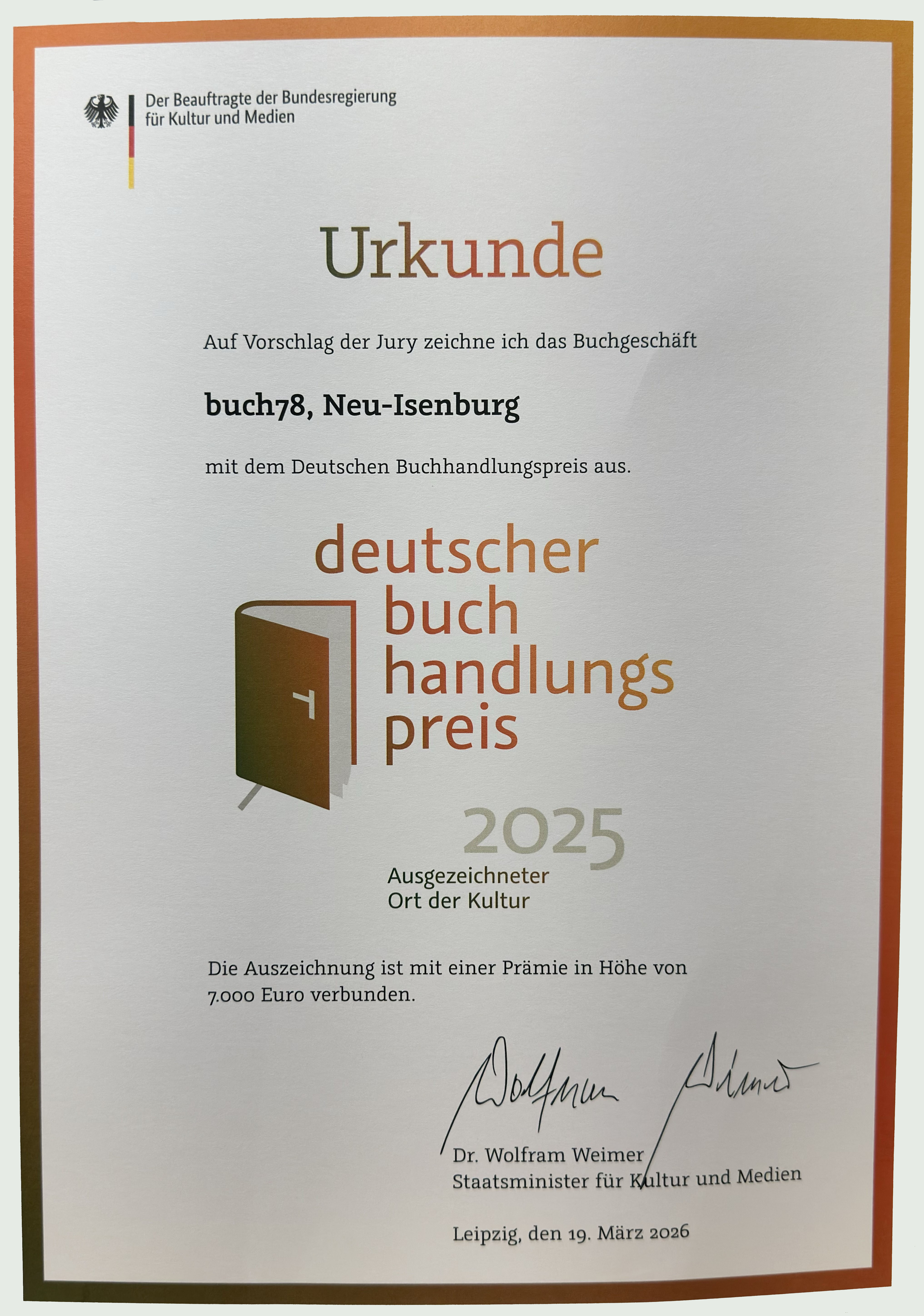 Auf das Bild zu klicken, um die Urkunde zu vergrößern.