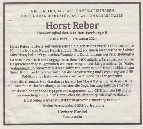 Herrn Horst Reber in der Huha im Jahr 2002
